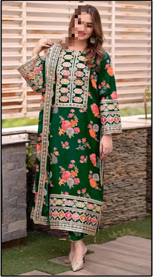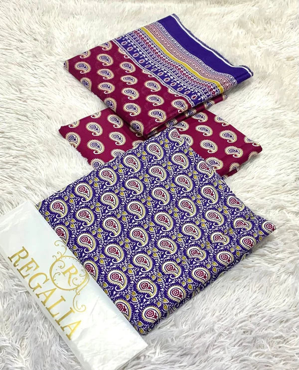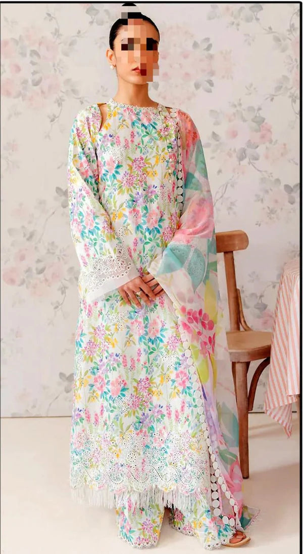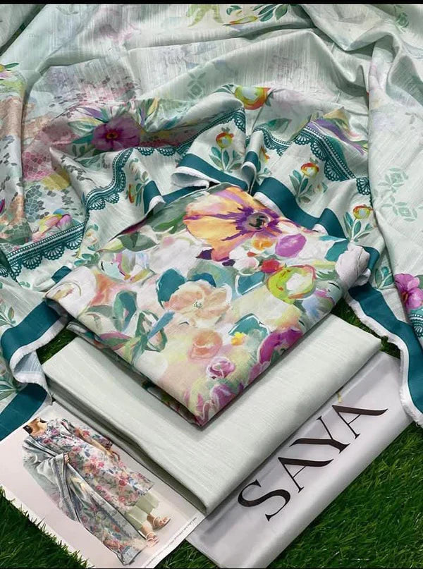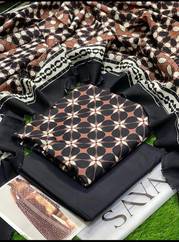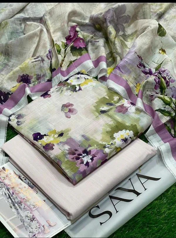 Upgrade your wardrobe with this premium 3PC slub printed lawn suit crafted for breathable all-day...